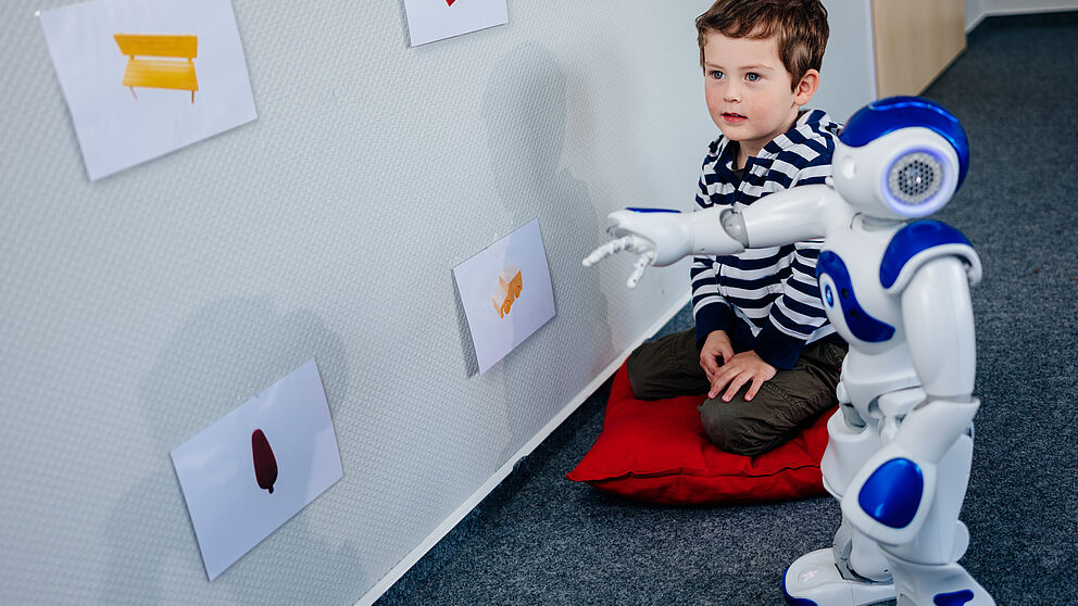 Photo (Paderborn University, Besim Mazhiqi): How can robots and children learn together? This is what the Psycholinguistics group at Paderborn University is investigating.