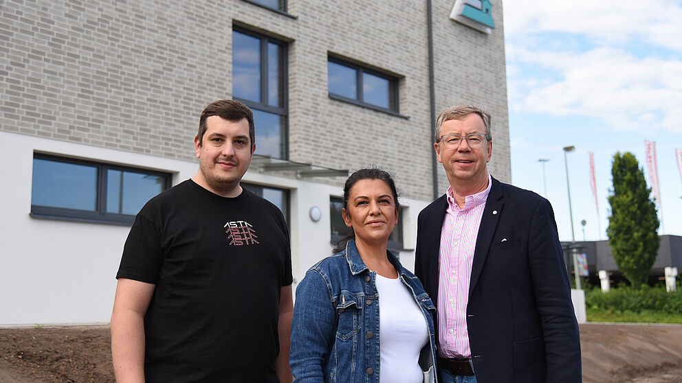 Photo (Studierendenwerk Paderborn): (from left) Torsten Heß, Chairman of the AStA Paderborn University, Gülhan Özbük, Dormitory Administration Studierendenwerk Paderborn, and Ulrich Schmidt, Managing Director of the Studierendenwerk, are delighted about the additional housing offer.