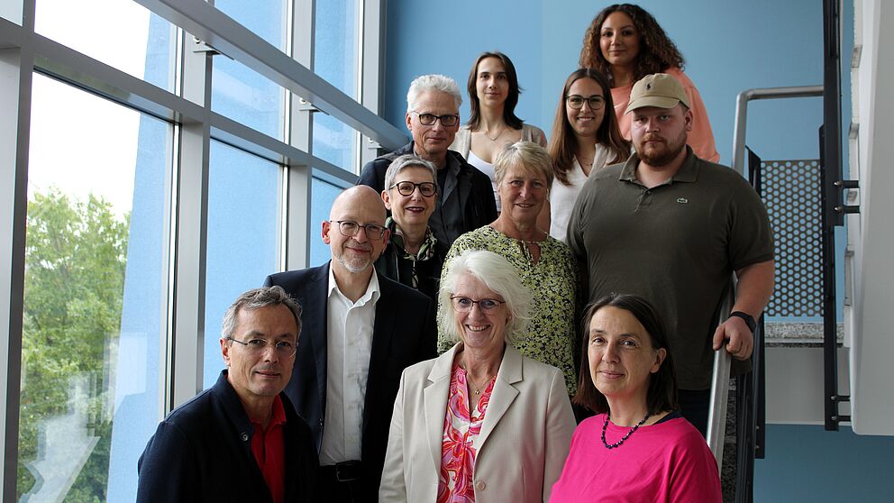 Photo (Paderborn University, Björn Heerdegen): Looking forward to an exciting summer camp: Prof. Dr. Bardo Herzig (front, 1st from left) with sponsors Claudia Holle (front, centre), Thomas Bartoldus (front, 2nd from left) and Prof. Dr. Rita Burrichter (2nd row, 1st from left), both PLAZEF board members, as well as Markus Kotterba (top, 1st from left). Philip Redeker (top, 1st from right), Franziska Scholz (top, 2nd from right) and Sophia Kaleas (top, 1st from left) are active as teamers at the camp and are supported by project staff Claudia Decker (front, 1st from right), Dr. Cornelia Zierau (2nd row, centre) and Dr. Maria Mochalova (top, 1st from right).