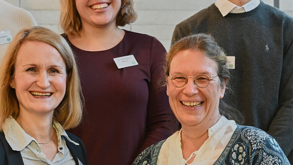 Foto (Maximilian Putz): Über den Projektstart „LFB-Labs-digital“ freuen sich Prof. Dr. Eva Blumberg und Prof. Dr. Katrin Temmen (vorne v. l.) und die wissenschaftlichen Mitarbeitenden Dr. Annkathrin Wenzel und Jan Roland Schulze (hinten v. l.).