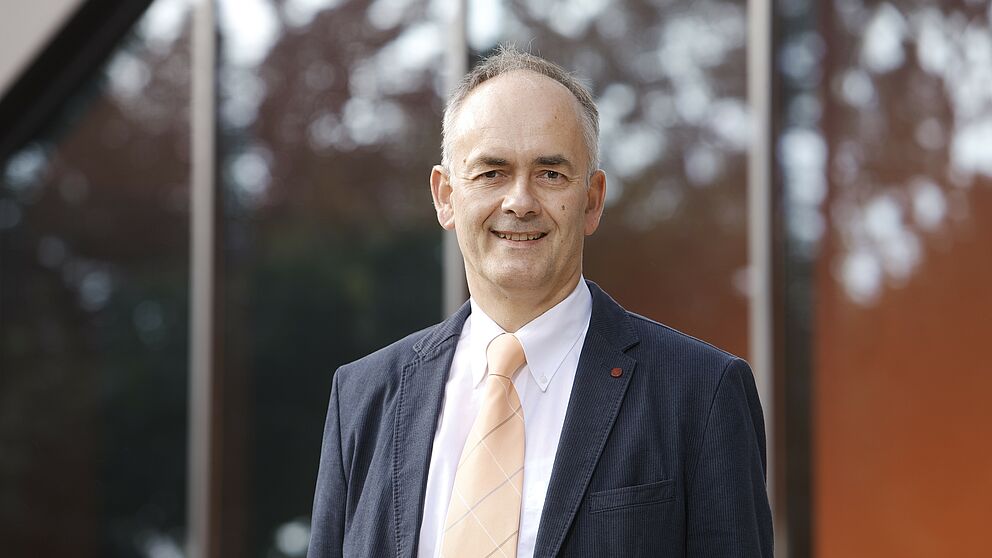 Foto (JRF e.V.): Prof. Dr. Manfred Fischedick, Präsident des Wuppertal Instituts für Klima, Umwelt, Energie, hält einen Vortrag an der Universität Paderborn.