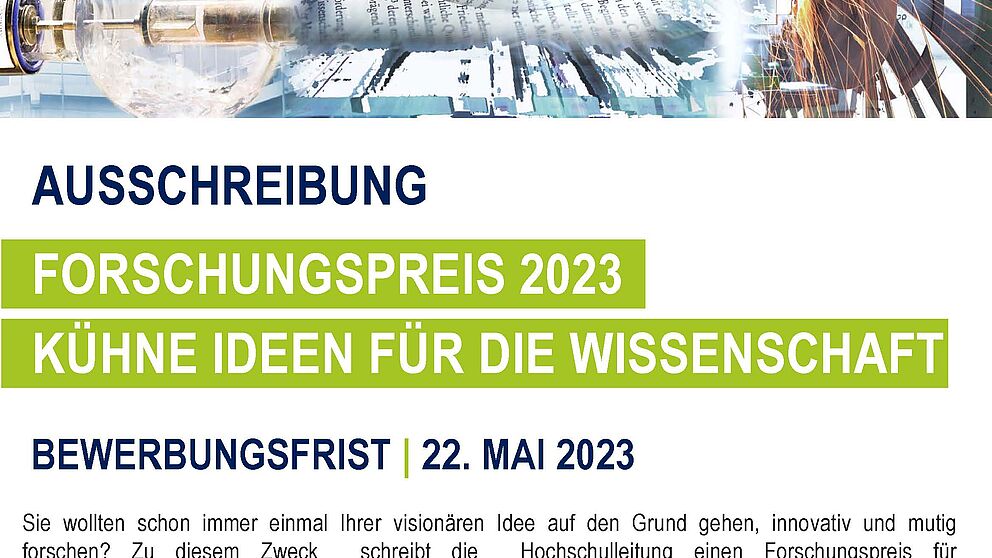 Die Hochschulleitung schreibt einen Forschungspreis für Wissenschaftler*innen aus, mit dem außergewöhnliche Forschungsprojekte abseits des Mainstreams gefördert werden sollen.