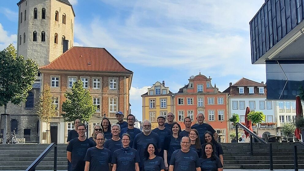 Foto (Universität Paderborn, Susanne Podworny): Die Teilnehmer*innen der Minerva School während der Stadtführung durch das Zentrum des Tagungsortes Paderborn.