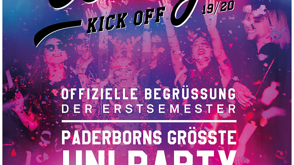 Zum Start des Wintersemesters 2019/20 veranstaltet die Universität Paderborn am Donnerstag, 10. Oktober, erstmals den „College Kickoff“, die offizielle Semestereröffnungsfeier. Über den Campus verteilt legen auf vier Bühnen 12 DJs Musik auf – von Trash, Elektronika und Hip Hop bis hin zu Electronic Dance Music. Los gehts um 22 Uhr. Ende der Veranstaltung ist am Folgetag um 3.30 Uhr.