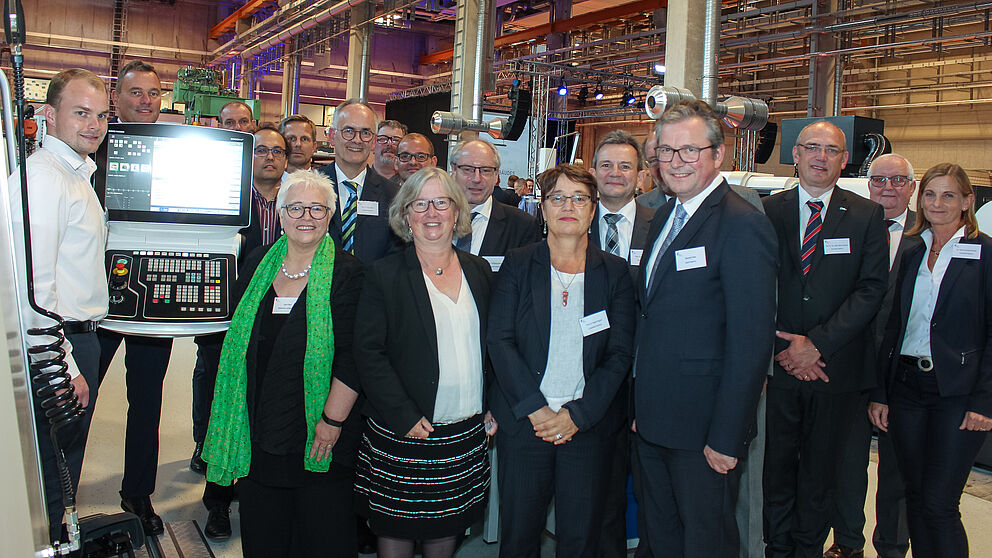 Foto (Universität Paderborn, Kamil Glabica): Freuen sich über ein neues Forschungsgebäude auf dem Campus der Universität Paderborn: erste Reihe, beginnend Zweite v. l.: Sigrid Beer (MdL NRW und Mitglied des Beirats des ILH), Simone Probst (Vizepräsidentin für Wirtschafts- und Personalverwaltung der Universität Paderborn), Prof. Dr. Birgitt Riegraf (Präsidentin der Universität Paderborn), Michael Dreier (Bürgermeister der Stadt Paderborn) und die Vorstandsmitglieder des ILH.