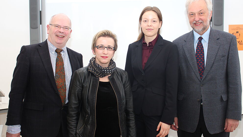Foto (Uni Paderborn, Frauke Döll): Eröffneten die neue NRW-Landesstelle für Immaterielles Kulturerbe (v. l.): Johannes Lierenfeld als Vertreter des Landes Nordrhein-Westfalen, Prof. Dr. Eva-Maria Seng, Maria Harnack und Uni-Präsident Prof. Dr. Wilhelm Schäfer.