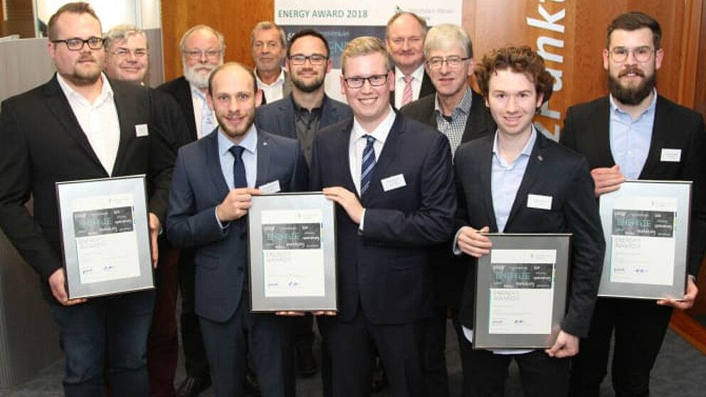 Foto (Westfalen Weser Energie): Lukas Diermann, Bastian Korthauer, Jannis Bohlmann, Roland Unruh, Jan-Henrik Zünkler (1. R.v.l.), Dr. Gerhard Herres, stellv. BGM PB Bernhard Schaefer, Juryvorsitz. Klaus Meyer, Lukas Keuck, Dr. Stephan Nahrath, Prof. Dr.-Ing. Joachim Böcker (h.v.l.).