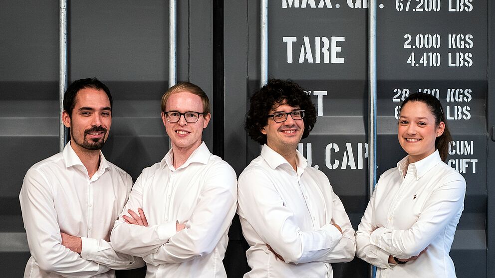 Foto (WaMa Kollektiv, Qibin Wang): Freuen sich über die Auszeichnung zum innovativsten Start-up des Jahres: v. l. Steffen Vogelsang, Gereon Deppe, Thomas Reiher und Anne Düchting.