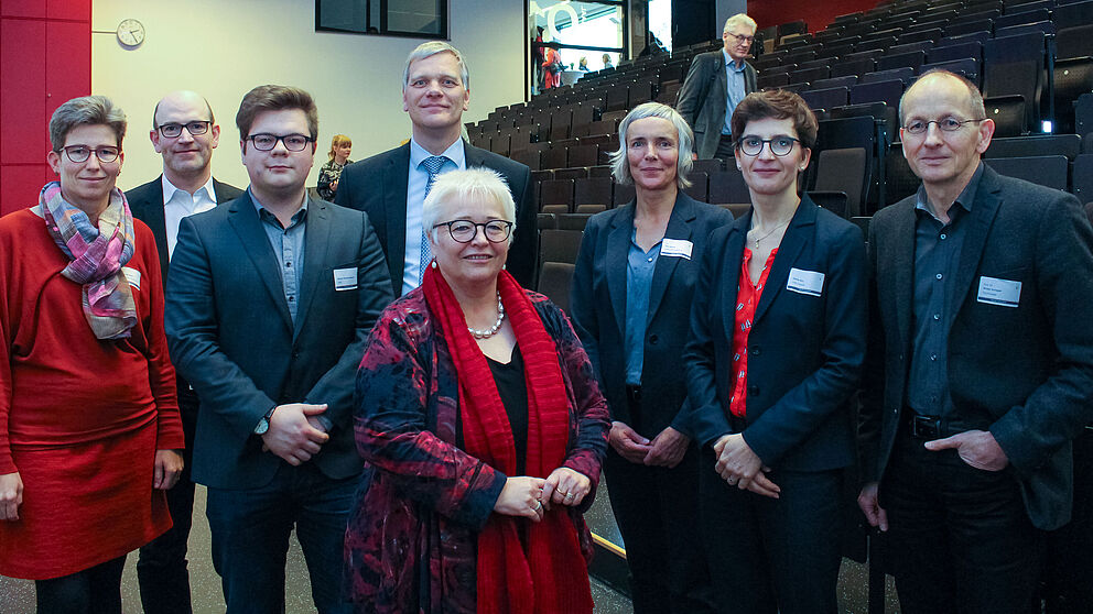 Foto (Universität Paderborn, Simon Ratmann): Diskutierten, wie gute Lehre in den ersten Semestern aussehen kann: V. l. Nicole Michaelis (Gymnasium Theodorianum), Prof. Dr. Dr. Oliver Reis (Universität Paderborn), Nicolai Rodehutskors (AStA), Prof. Dr.-Ing. Volker Schöppner (Vizepräsident für Lehre, Studium und Qualitätsmanagement der Universität Paderborn), Sigrid Beer (MdL NRW für Bündnis 90/Die Grünen), Dr. Elke Bosse (Universität Hamburg), Olivia Key (CHE Consult) und Prof. Dr. Niclas Schaper (Universität Paderborn).