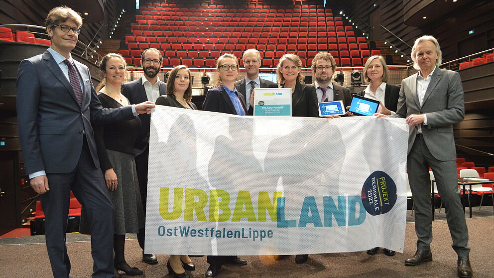 Foto (OWL GmbH): Start für die OWL Kulturplattform (v.l.): Prof. René Fahr, Uni Paderborn, Ariane Schmitt-Chandon, OWL Kulturbüro, Elias Koutsonas, aXon GmbH, Natascha Ersch, aXon GmbH, Jana Duda, Leiterin OWL Kulturbüro, Prof. Daniel Beverungen, Uni Paderborn, Regierungspräsidentin Judith Pirscher, Dr. Simon Oberthür, Uni Paderborn, Software Innovation Campus Paderborn (SICP), REGIONALE-Managerin Annette Nothnagel, OWL GmbH-Geschäftsführer Herbert Weber.
