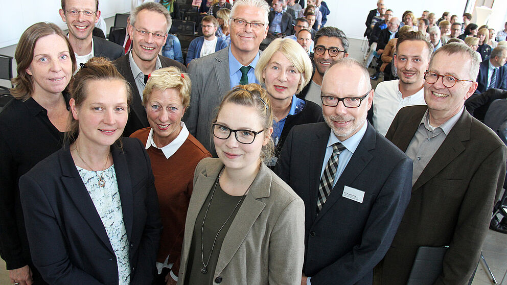 Foto (Berit Steinkröger): Gaben den Startschuss für das Projekt (v. l.): Prof. Ulrike Kerber, Vizepräsidentin für Kommunikation und Profil der Hochschule OWL, Prof. Dr. Ulrich Schäfermeier, Vizepräsident für Studium und Lehre der FH Bielefeld, Prof. Dr.-Ing. Yvonne-Christin Bartel, Vizepräsidentin für Bildung und Internationalisierung der Hochschule OWL, Ingmar Münther von der Kurt-Tucholsky-Gesamtschule Minden, Waltraud Melsheimer vom Heisenberg-Gymnasium Dortmund, Lisa Mellies, Projektkoordinatorin Talentscouting, Prof. Dr. Ingeborg Schramm-Wölk, Präsidentin der FH Bielefeld, Suat Yilmaz, stellv. Leiter des NRW-Zentrums für Talentförderung, Prof. Dr. Joachim Goebel vom Ministerium für Kultur und Wissenschaft des Landes Nordrhein-Westfalen, Talentscout Jan-Steffen Glüpker und Prof. Dr. Martin Egelhaaf, Prorektor für Forschung, wissenschaftlichen Nachwuchs und Gleichstellung der Universität Bielefeld.