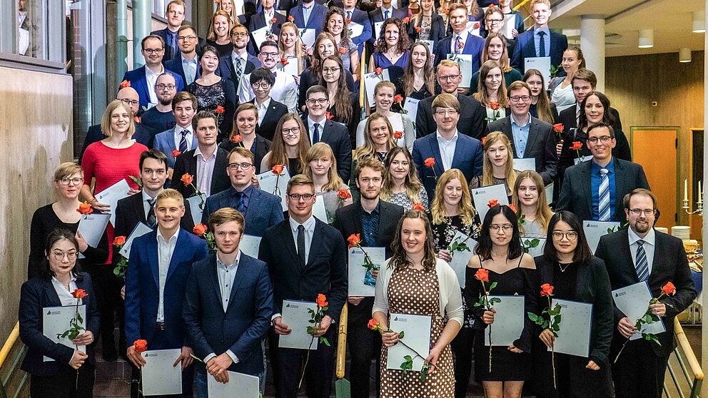 Die diesjährige Festveranstaltung der Fakultät für Naturwissenschaften fand am 23. November im Audimax statt. Gut die Hälfte der 170 Absolvent*innen, die im Prüfungsjahr 2019 erfolgreich ihren Bachelor- oder Masterabschluss erlangten oder promoviert wurden, feierten hier im Beisein ihrer Angehörigen und Freunde.