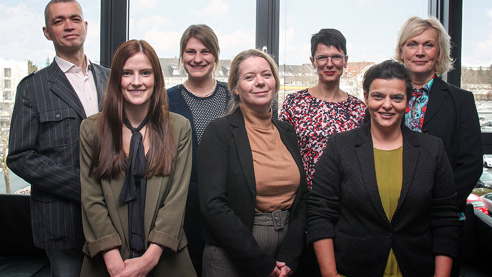 Foto (Universität Paderborn, Kamil Glabica): Die Kooperationspartner blickten der Ergebnispräsentation gespannt entgegen: v. l.: Uwe Schmalenbach (UPRESS), Anna Buchholz, Julia Rötzmeier-Keuper (beide Universität Paderborn), Kathrin Förster (UPRESS), Theresia Kneschke (DRF Luftrettung), Prof. Dr. Nancy Wünderlich (Universität Paderborn) und Jutta Oellig (DRF Luftrettung).
