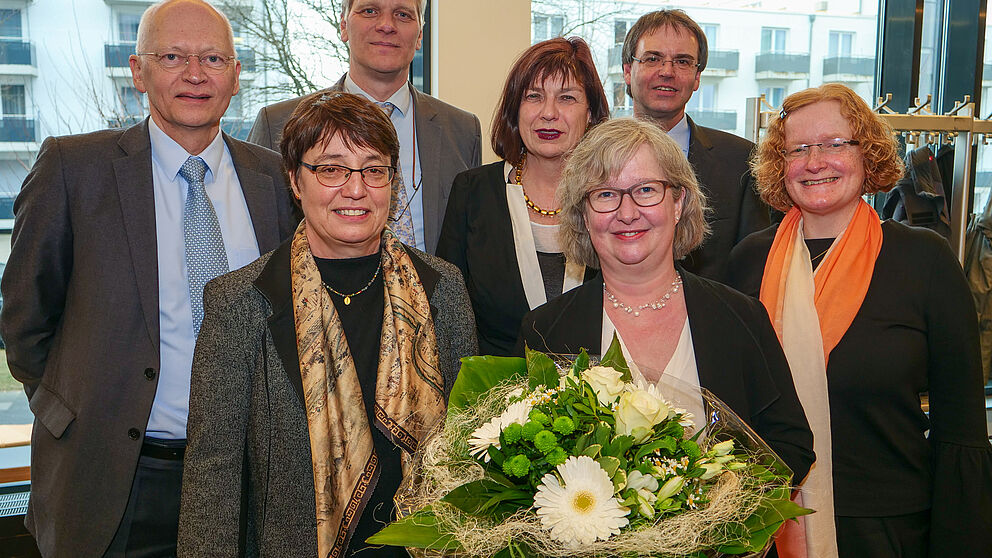 Foto (Universität Paderborn, Johannes Pauly): Freuen sich, die Universität Paderborn weiter gemeinsam gestalten zu können: V. l. Prof. Dr. Jürgen Brautmeier (Stellvertretender Vorsitzender des Hochschulrats), Prof. Dr. Birgitt Riegraf (Präsidentin der Universität Paderborn), Prof. Dr.-Ing. Volker Schöppner (Vizepräsident für Lehre, Studium und Qualitätsmanagement), Dr. Dagmar Simon (Vorsitzende des Hochschulrats), Simone Probst, Prof. Dr. Torsten Meier (Vizepräsident für Internationale Beziehungen) und Prof. Dr. Merle Tönnies (Sprecherin des Senats).