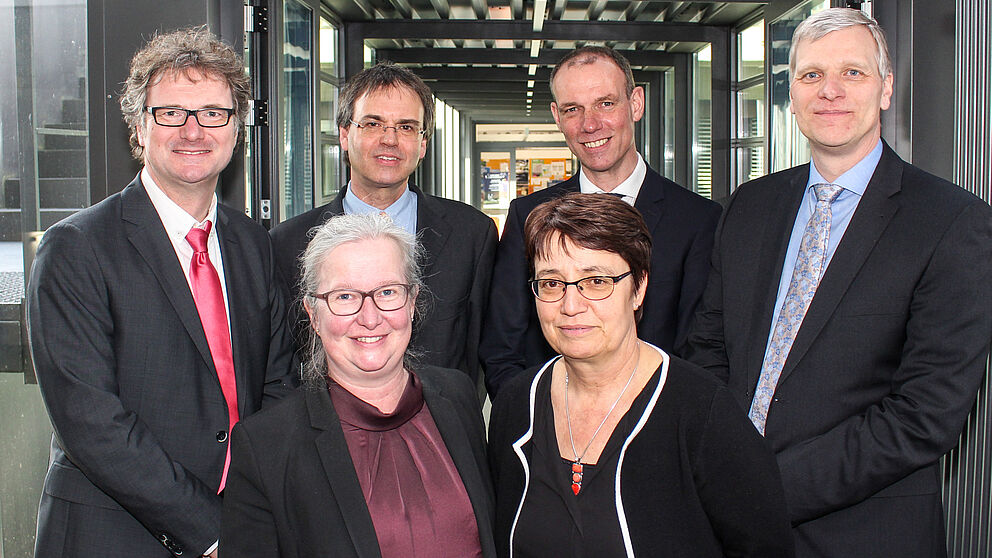 Foto (Universität Paderborn, Johannes Pauly): Das neue Präsidium der Universität Paderborn: (v. l.) Prof. Dr. Rüdiger Kabst, Simone Probst, Prof. Dr. Torsten Meier, Prof. Dr. Birgit Riegraf, Prof. Dr. Johannes Blömer und Prof. Dr.-Ing. Volker Schöppner.