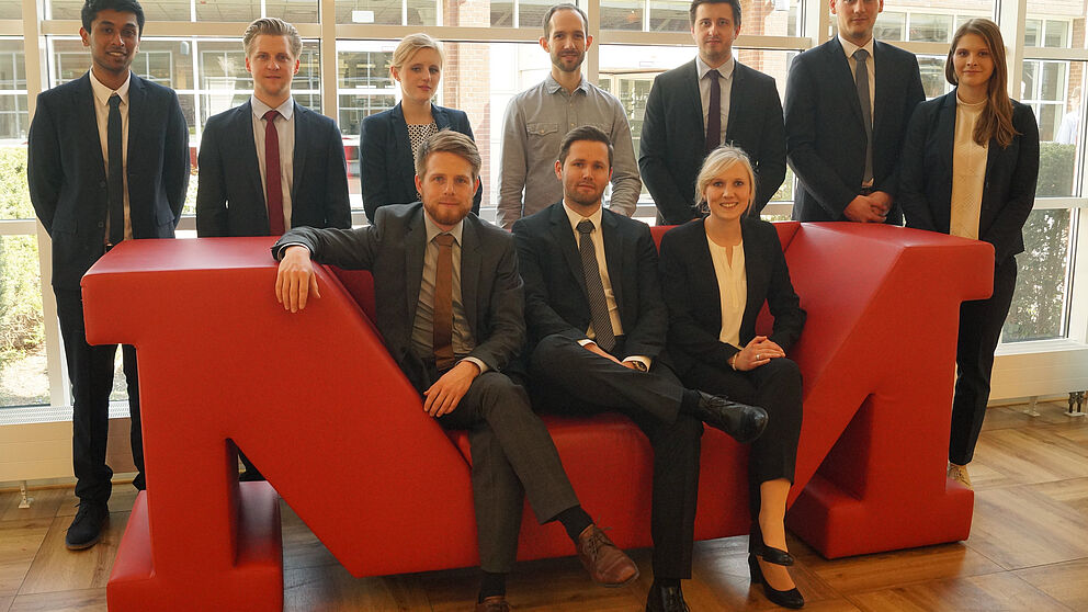 Foto (Heinz Nixdorf Institut): Das Projektteam vom diesjährigen Sommersemester bei Miele: v. l. (hinten): Wilson Shanthanan, Thilo Kriegel, Nadine Niewöhner, Felix Schäfer (Miele), Maik Berend, Kai Ellermann, Alena Tušek. Vordere Reihe v. l.: Maximilian Frank, Dominic Korte und Stefanie Czichos.