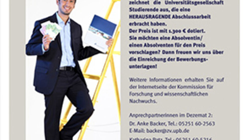 Auf Vorschlag der Universität Paderborn zeichnet die Universitätsgesellschaft Studierende aus, die eine herausragende Abschlussarbeit geschrieben haben.
