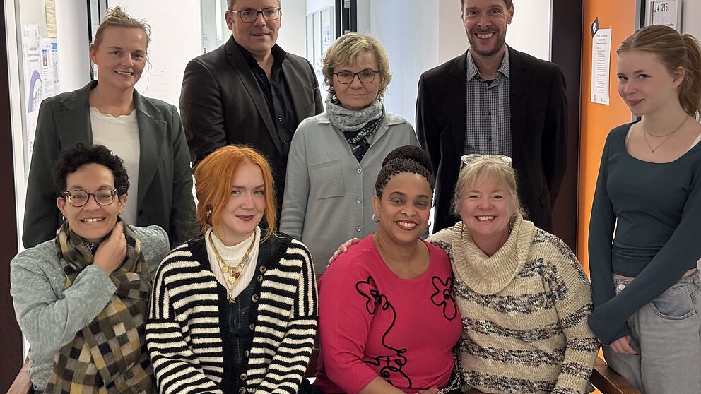 Foto (Universität Paderborn): Bereits im Dezember war eine Delegation der Partneruniversität Kennesaw State University (KSU) zu Besuch in Paderborn, um Abstimmungen zur Internationalisierung des Praxissemesters zu treffen: (oben v. l.) Dr. Katharina von Elbwart, Prof. Dr. Peter Hohwiller, Dr. Jeannette Böttcher, Prof. Dr. Dominik Rumlich; (unten v. l.) Prof. Dr. Jillian Ford, Studentin Meredith, Prof. Dr. Kawonza Jones-Wilson, Prof. Dr. Megan Adams und Ellen Adams.