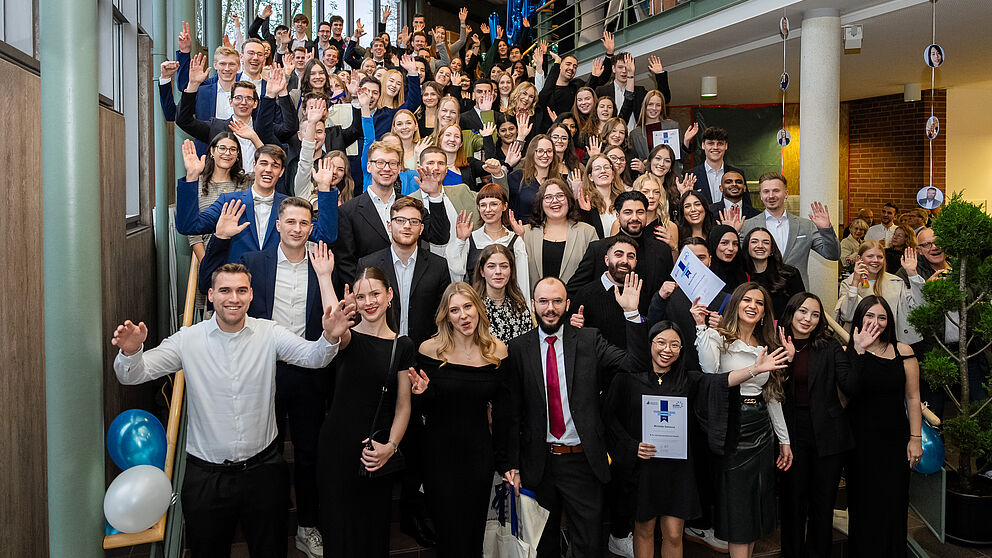 Foto (Universität Paderborn, Thorsten Hennig): Absolvent*innen der Bachelorstudiengänge am Tag der Wirtschaftswissenschaften 2024.
