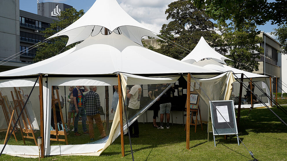 Foto (Universität Paderborn, Tanja Dittmann): Beim „Festival des Staunens“ können Besucher*innen u. a. an Workshops und Stadtführungen teilnehmen oder in den Jurten auf dem Campus Einblicke in Street Art aus Tansania, Klangtherapien und architektonische Welten erhalten.