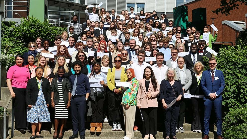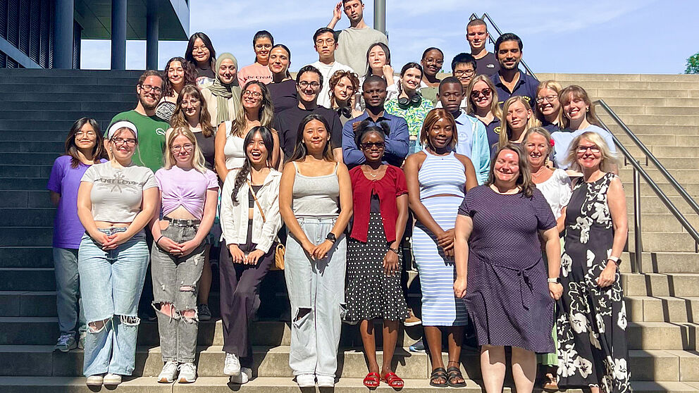 Foto (Patricia Gocha): „Arrivederci“ und „Goodbye“: Die Austauschstudierenden der Paderborner Partneruniversitäten haben sich zum Abschied mit ihren Kommiliton*innen, dem Eurobiz-Team und den Ansprechpartner*innen vom International Office getroffen.