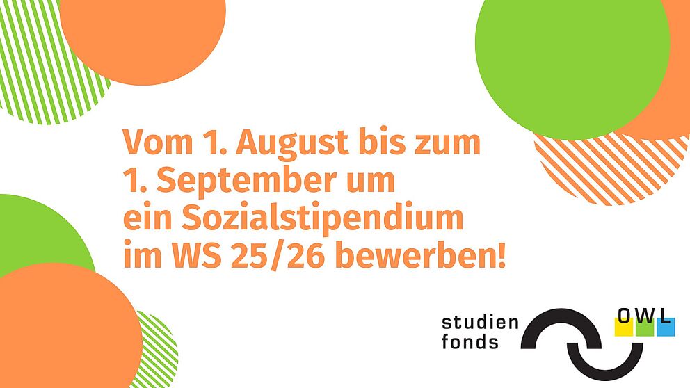 Vom 1. August bis einschließlich 1. September können sich Studierende und Studieninteressierte aus der Region Ostwestfalen-Lippe (OWL) für ein Sozialstipendium der Stiftung Studienfonds OWL bewerben. Mit diesem Programm werden finanziell bedürftige Studierende über ein Jahr mit monatlich 150 Euro und umfassender ideeller Förderung in einem großen Netzwerk unterstützt.