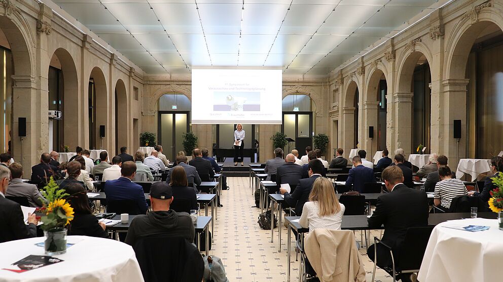 Foto (Heinz Nixdorf Institut): Prof. Katharina Hölzle (Fraunhofer-Verbund Innovationsforschung) auf dem 17. Symposium für Vorausschau und Technologieplanung.