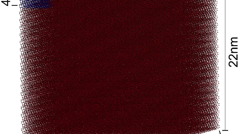 Illustration (Prof. Dr. Rustam Khaliullin, McGill University): Grafischer Vergleich der größten periodischen Teilchensysteme, die mit CP2K simuliert werden können, unter Verwendung effizienter kubisch-skalierender Dichtefunktionaltheorie (blau) und mittels neuartiger linear skalierender Eigenwertlöser (braun).