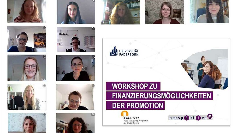 Grafik/Fotos (Peer-Mentoring-Programm): Im März und April nahmen Studentinnen über Online-Meetings an den Mentoring-Programmen „Einblick!“ und „perspEktIve M“ teil.