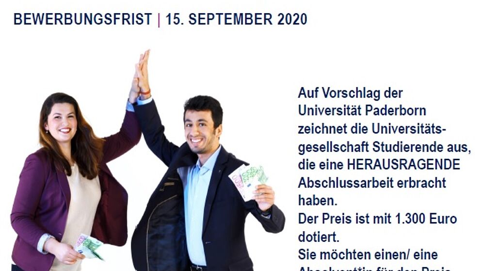 In den Kategorien „herausragende Abschlussarbeiten“ und „ausgezeichnete Dissertationen“ werden an der Universität Paderborn wieder Preisträger*innen gesucht. Vorschlagsfrist ist jeweils der 15. September.