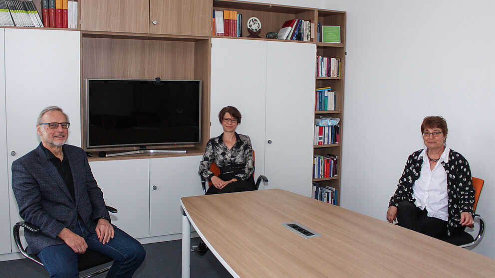 Foto (Universität Paderborn): Freuen sich über die gemeinsame Berufung von Prof. Dr. Bettina Kohlrausch (Mitte): Prof. Dr. Volker Peckhaus, Dekan der Fakultät für Kulturwissenschaften, und Prof. Dr. Birgitt Riegraf, Präsidentin der Universität Paderborn.