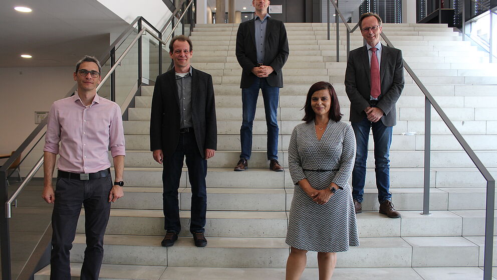 Foto (Universität Paderborn): Die Mitglieder im neu gewählten Dekanat der Fakultät für Wirtschaftswissenschaften (v. l.): Prodekan für Kommunikation und Prozesse Prof. Dr. Michael Ebert, Dekan Prof. Dr. Guido Schryen, Studiendekan Prof. Dr. Stefan Müller, Prodekanin für Kooperationen und Wissenstransfer Prof. Dr. Nancy Wünderlich und Prodekan für Forschung und wissenschaftlichen Nachwuchs Prof. Dr. Burkhard Hehenkamp.