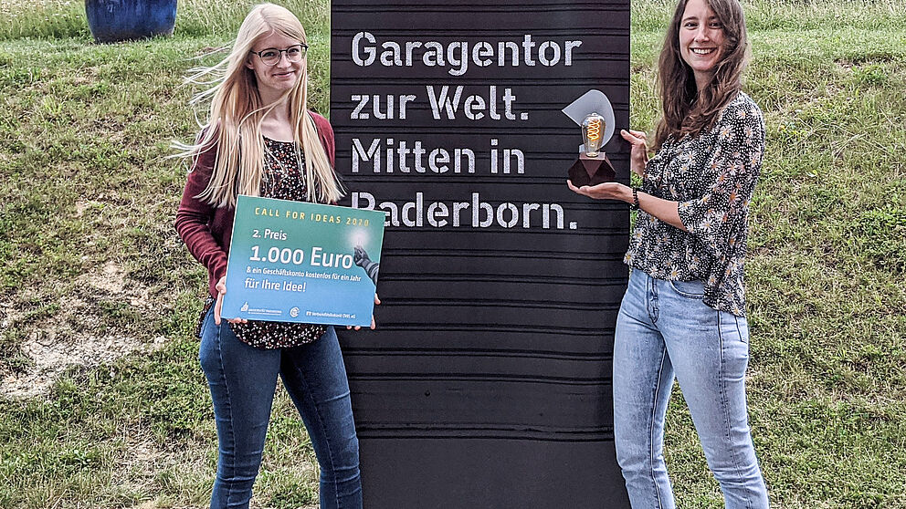 Foto (Uni Paderborn): v. l.: Lia und Franziska nahmen im Sommersemester am Ideenwettbewerb für Geschäftsideen „Call for Ideas“ teil und belegten mit ihrer Geschäftsidee, der App „Digimenz“, den zweiten Platz.