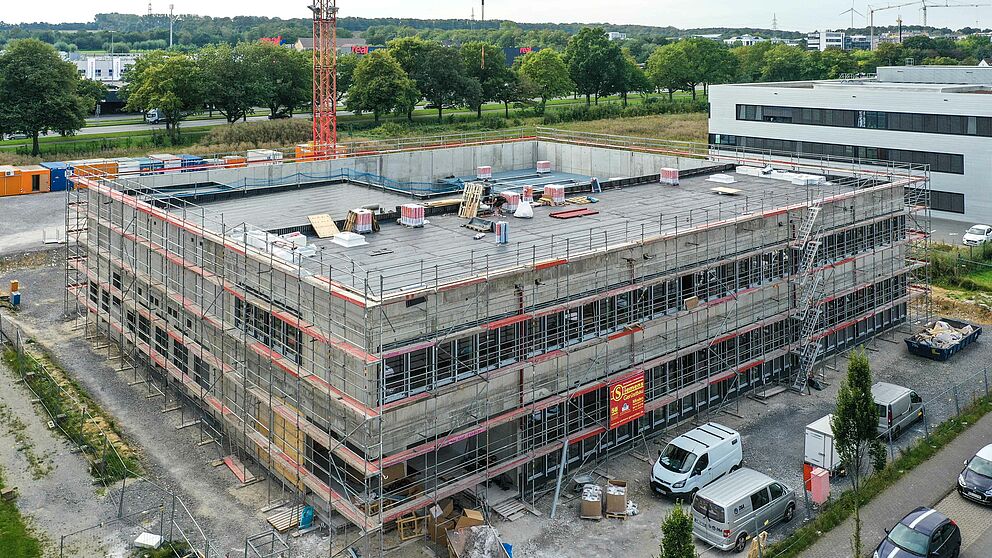 Paderborn. An der Universität errichtet der Bau- und Liegenschaftsbetrieb des Landes Nordrhein-Westfalen (BLB NRW) ein neues Hochleistungsrechenzentrum – mit einem der besten Computerhirne Deutschlands. Der Rohbau des Gebäudes steht nun.