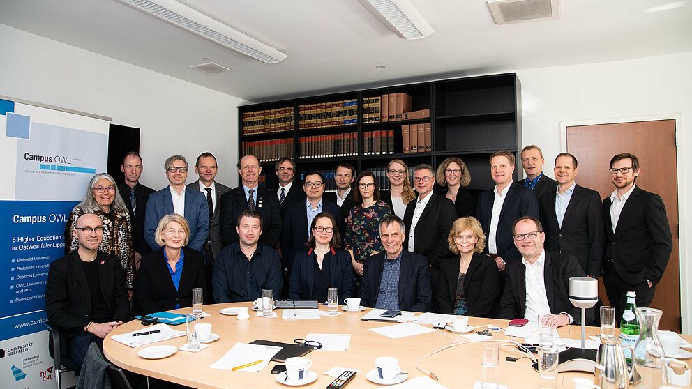 Foto (Campus OWL): Beim Expertengespräch tauschten sich die Vertreter*innen der Hochschulen mit nordamerikanischen Partner*innen zu möglichen Forschungskooperationen im Bereich "Future of Work – Arbeit 4.0" aus.